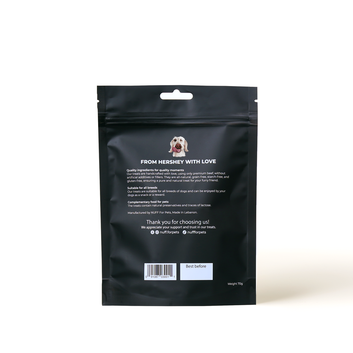 Whether you're training a young pup or rewarding your senior companion, our soft and lean beef jerkys provide a delicious, nutritious, and low-fat option that dogs love. Treat your dog to the rich taste and benefits of real beef with NUFF's premium soft jerkys!